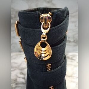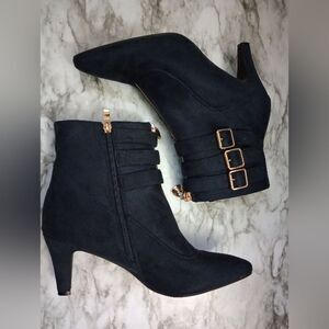 IDIFU Navy Blue Ankle Boots With Buckles Zip Closure Skinny Heel Size 10