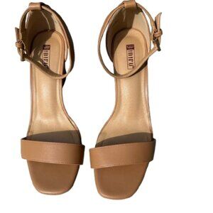 Open-toe ankle strap nude / tan 3" wedge heels that don’t compromise stability.