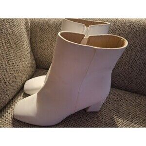 IDIFU Square Toe Ankle Boots, White, Size 8.5