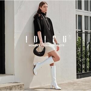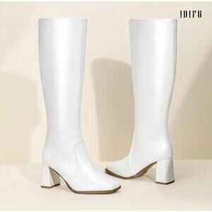 IDIFU White Knee High Boots with Chunky Heel