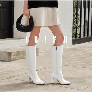 These fashion knee-high boots combine style and comfort with a 3-inch trapezoid heel, square toe, and premium PU upper. Designed for all-day wear, they feature a soft latex footbed and easy side zippers. The sleek silhouette channels classic gogo boot vibes with a modern twist. Available in black, brown, white, and red, these boots pair effortlessly with both casual and dressy outfits.