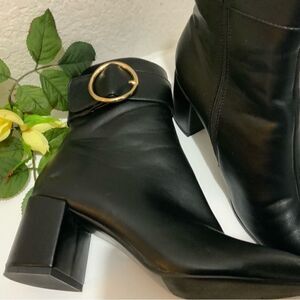 IDIFU Women Dressy Chunky Heel Ankle Boots Pointed Toe Metal Boots Size 8.5