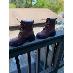 IDIFU Women’s Combat Boots Size 7 Brown Chunky Sole Lace-Up Ankle Boots NIB