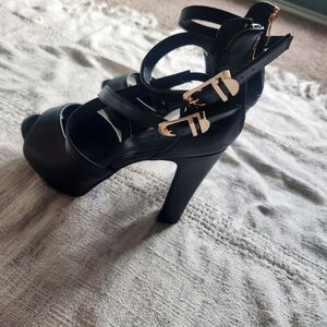 IDIFU Women's Crisscross Strappy Platform High Chunky Heels Size 7.5