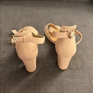 Elegant nude heels with strappy design. Perfect for any occasion.
