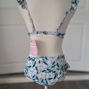 IDOPIO 3 Piece Floral Bikini with Cover Up Maxi Sarong Sz. Large NWT