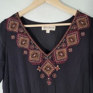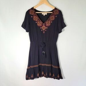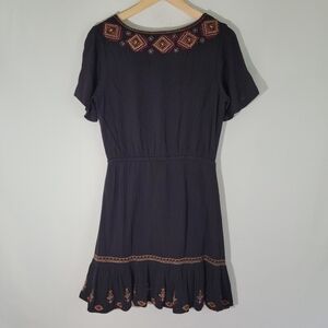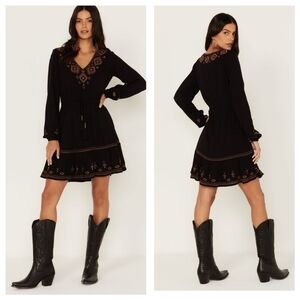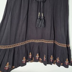 IDYLLWIND Embroidered Boho Dress XS Black Short Sleeve Boho Grunge Goth Tassel