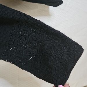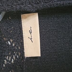 I.E. Open Belted Long Sleeve Cardigan Sweater Sz XL Black with crochet like details. NWT