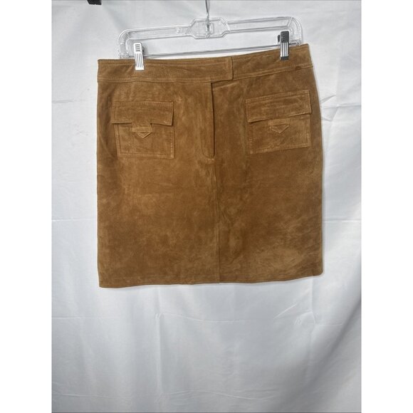 IE Tan Suede Leather Skirt 12 lined Short Brown Pockets School girl Old Money