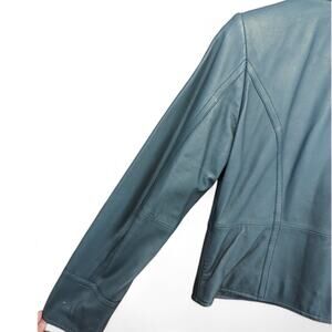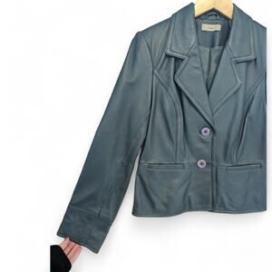 I.E. Vintage 100% Leather Blue Blazer Jacket Size M