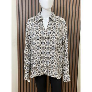 I.E. Women's 20 Brown Button-Up 100% Silk Shirt Floral Casual Chic Boho Work