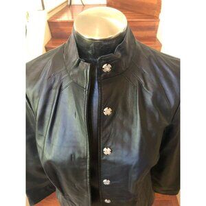 I.E. Women's Black Leather Jacket Snap Buttons Slim Cropped Size PM