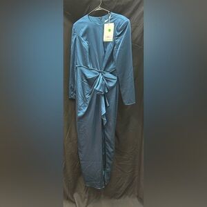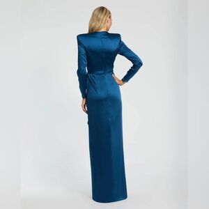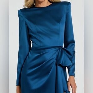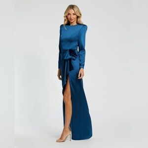 IEENA FOR MAC DUGGAL 26676 NWT Dark Blue Long Sleeve Structured Bow Draped Gown