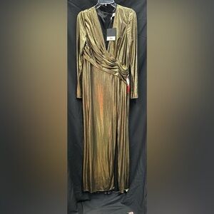 IEENA FOR MAC DUGGAL 26684 NWT Metallic Long Sleeve Asymmetrical Ruched Gown