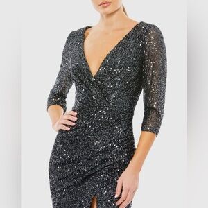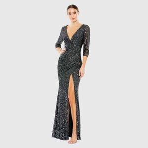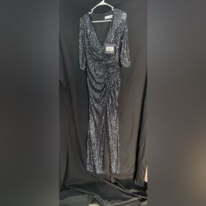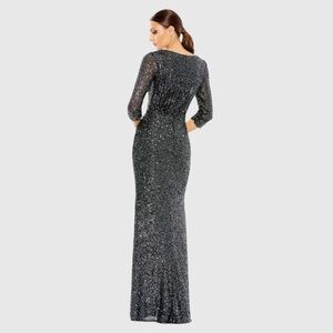 IEENA FOR MAC DUGGAL 42015 NWT Sequined Draped 3/4 Sleeve Gown