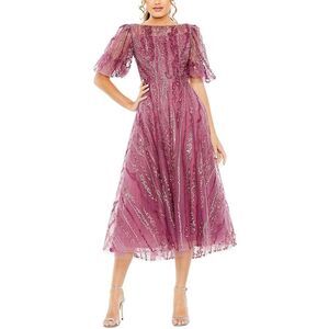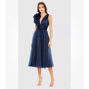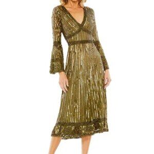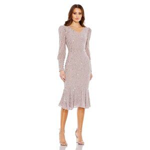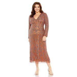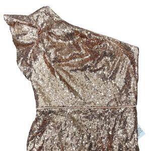 IEENA FOR MAC DUGGAL 49290 One Shoulder Ruffled Sequin Midi Dress Copper 4 NEW
