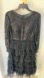 IEENA FOR MAC DUGGAL Black Long Sleeve Ruffle Tiered SEOUINED TULLE Midi Dress Womens size 4