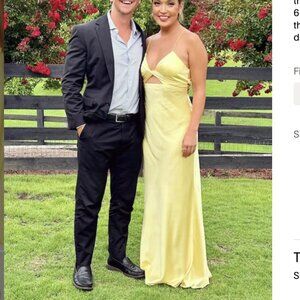 IEENA FOR MAC DUGGAL Butter Yellow Twist Front Gown Maxi Dress Size 12