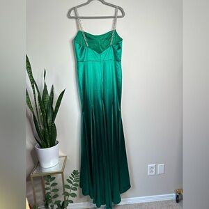 IEENA FOR MAC DUGGAL Emerald Satin Sheath Gown with crystal straps 10 NWOT