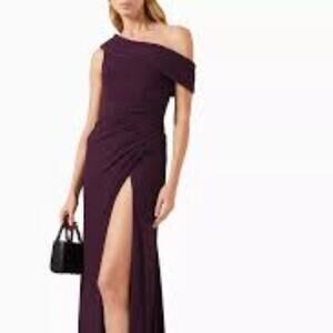 IEENA FOR MAC DUGGAL FOLD OVER ONE SHOULDER GOWN WOMEN DEEP PURPLE SIZE 2 NEW
