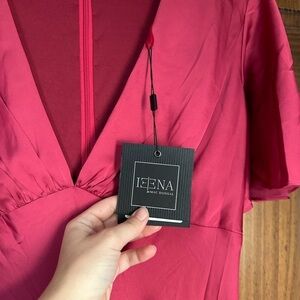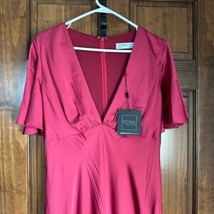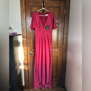 IEENA FOR MAC DUGGAL Flounce V-Neck Raspberry Pink Gown