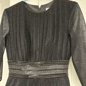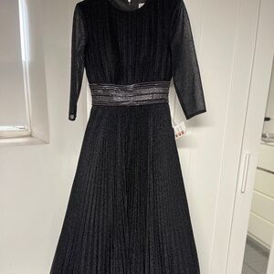 Shimmering Pleated A-Line 3/4 Sleeve Gown