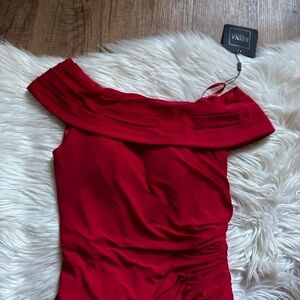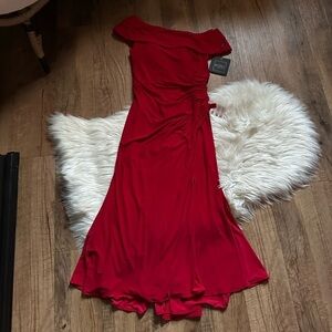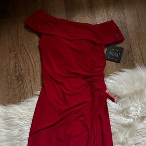 IEENA FOR MAC DUGGAL Ruched Off The Shoulder Midi Dress In Red
