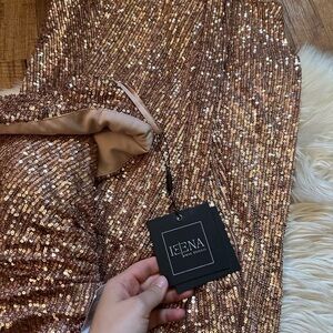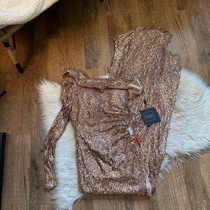 IEENA FOR MAC DUGGAL Sequined Drop Shoulder Faux Wrap Gown In Copper