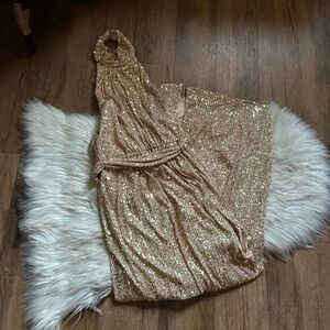 IEENA FOR MAC DUGGAL Sequined Halter Neck Belted Soft Tie Dress