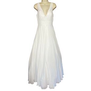 IEENA FOR MAC DUGGAL White CHIFFON LONG EVENING DRESS NWOT Size 2