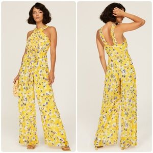 IEENA FOR MAC DUGGAL Yellow Crossed Halter Tie Waist Jumpsuit (D7)