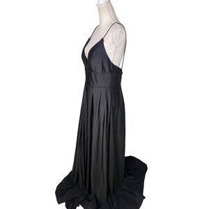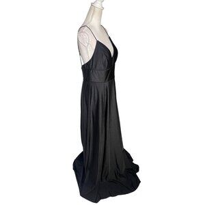 IEENA Mac Duggal 26165I Deep V Neck High Slit Sleeveless Gown Black Womens Size