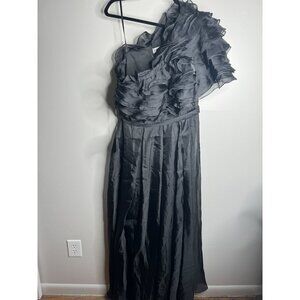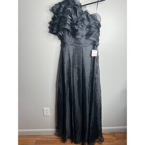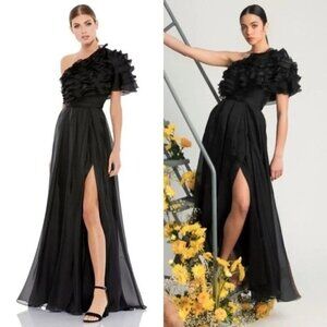 IEENA Mac Duggal 26527 Black Ruffle One-Shoulder Chiffon Gown Dress Size 12 NWT