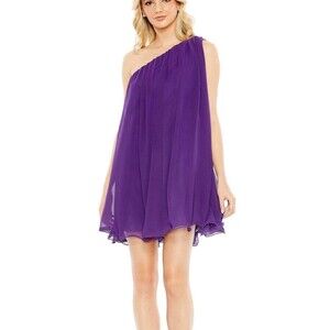 IEENA Mac Duggal Purple One Shoulder Flowy Chiffon Mini Dress Women's 6