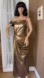 Made from shimmering gold stretch fabric that catches the light with every movement. Fully lined. Zip-back closure.