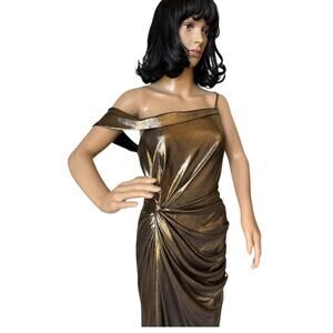 IEENA for Mac Duggal Gold Metallic One-Shoulder Gown style 26728 size 8
