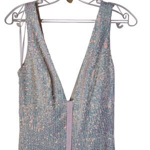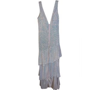IEENA FOR MAC DUGGAL Sequin Asymmetrical Ruffle Tiered Gown Size 8 Style 27046