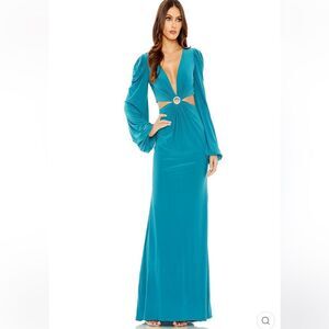 IEENA Mac Duggal Jersey Puff Long Sleeve Cut Out Column Gown NWT size 4