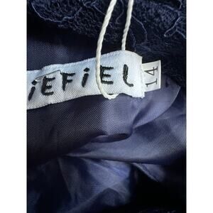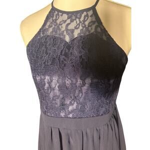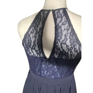 IEFIEL Navy Lace Halter Keyhole Back Full Maxi Skirt Size 14 Formal NWT Dress