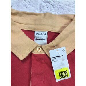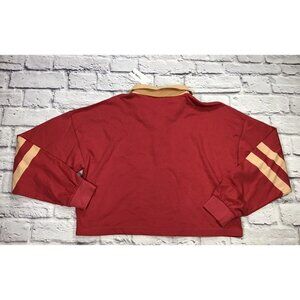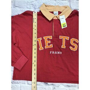 IETS FRANS Cropped Cotton Rugby Top Womens Large Red/Peach Collared Long Sleeve