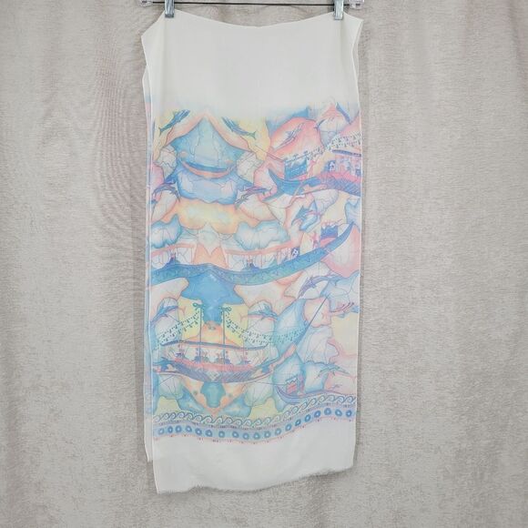 IFASMA Greek Scarf Pastel Abstract Dolphins Vintage
