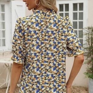 ADORABLE MULTICOLOR FLORAL TOP 1/2 SLEEVE RUFFLE NECK-BY IFFEI
