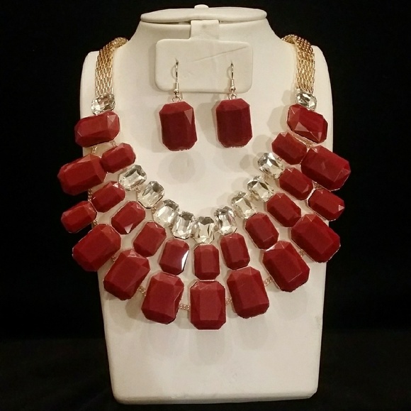 Pretty toned Burgundy & Clear stone Bismarck link with matching earrings or any other earrings of your choice, see photo samples