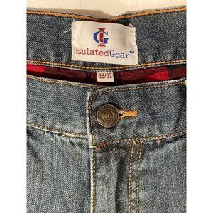 IG INSULATED GEAR ~ Men's flannel-lined carpenter jeans. Size 38x32. Buffalo plaid flannel lining. Relaxed fit.
