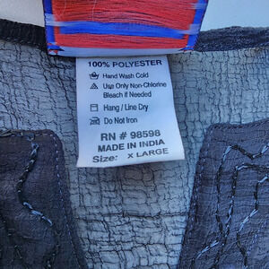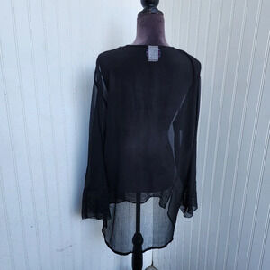 I.G. Sport Black Airy Sheer Polyester Gauze Tunic Top Embroidery Blouse India XL Q21