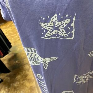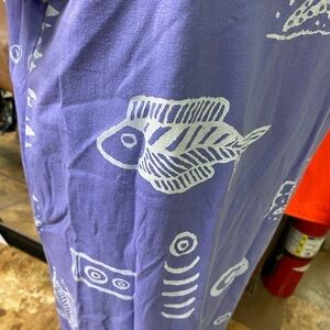 Super cute and comfortable purple tee shirt dress with adorable fish designs