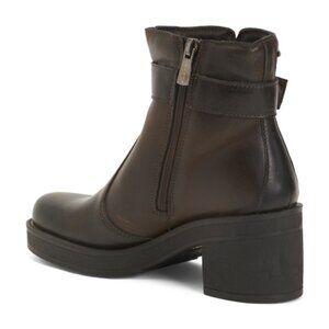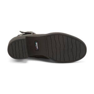 lightly padded footbed, block heel, platform style, strap and buckle accent