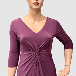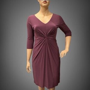 IGIGI Donna Dress Plus 14/16 Wild Rose 3/4 Sleeve Knee Length V-Neck Ruching NWT