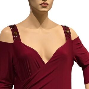 IGIGI Jeweled Siren Maxi Dress Size 18/20 Blood Red Cold Shoulder Lined Gown NWT