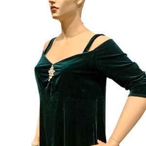 IGIGI Jeweled Velvet Party Dress Plus 22/24 Green Bra-Friendly, 3/4 Sleeves NWOT